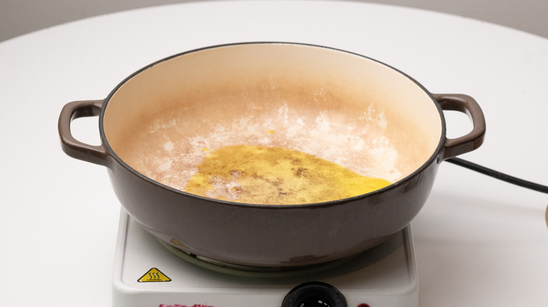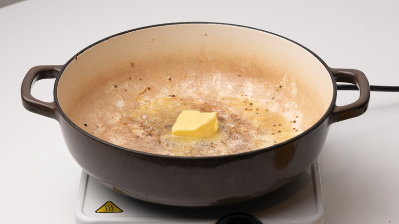 Remove the chicken from the pan, reduce the heat to medium, and add the butter to the pan.