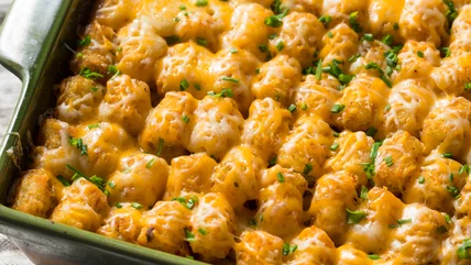 To upgrade your favorite tater tot casserole recipe, consider your favorite popular burger toppings. A typical tot hotdish recipe will call for ground beef, cheese, and seasonings, so you can keep the main elements or swap out for a different cheese or the seasonings you use on your burgers. Then add in other components you love — burger sauce, bacon, jalapeños, or mushrooms. For a tangy kick, try incorporating pickles or relish into the mix. You might also add a layer of crispy fried onions on top for extra crunch. Bake as directed, then add fresh toppings if you'd like.