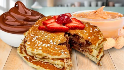 If the idea of stuffing your pancakes with nut butter is intriguing but you want something even more decadent, then Nutella is just the ideal option. Nutella, the chocolate-hazelnut spread that pairs well with all sorts of breakfast foods, naturally works well stuffed into pancakes since it will give you that same gooey, oozy experience. And, while Nutella sort of counts as a nut butter all by itself, since hazelnuts are a key ingredient, we figured that it deserves recognition all on its own, because it really does take a stuffed pancake from something good to something great.