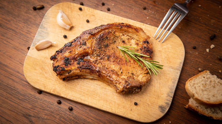Meanwhile, coat the chops again in a light layer of cooking oil or sauce. Once the air fryer is extremely hot, return the pork chops to the basket and cook them for another six to eight minutes, until their internal temperature reaches 130 degrees Fahrenheit and the pork chops have a golden brown, crispy crust on the outside. Don't forget to let the meat rest after cooking to ensure that the pork chops stay as juicy as possible before slicing into them. Next time you use an air fryer pork chops recipe, try incorporating dry brining and the reverse sear method for juicy, tender chops with a beautiful crust.