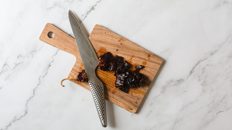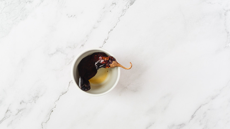 - Soak the chipotle pepper in 1 cup boiling water for 10 minutes. Discard the water.