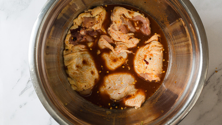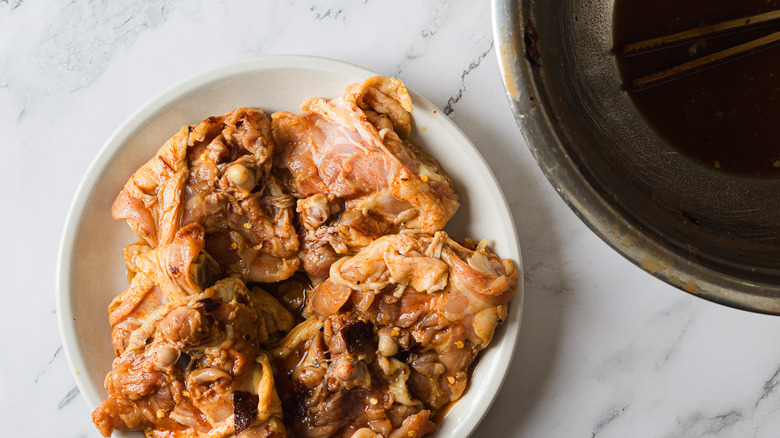Add the chicken thighs to the bowl, cover, and refrigerate for at least 2 hours and up to 8 hours.