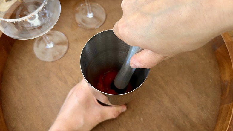 Rosenhouse offers several options for playing around with and enhancing this tomato martini. For starters, she suggests "adding herbs, such as basil or cilantro, when muddling the cherry tomatoes," which is sure to add plenty of fragrance to the drink. You can also swap in lemon juice instead of lime for a citrusy twist. Meanwhile, if you prefer your cocktails on the tarter side, you can use less simple syrup or swap in honey or agave for a slightly different flavor.