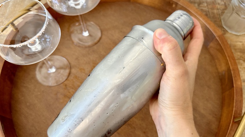 Cover and shake vigorously for at least 15 seconds, or until a layer of frost coats the shaker.