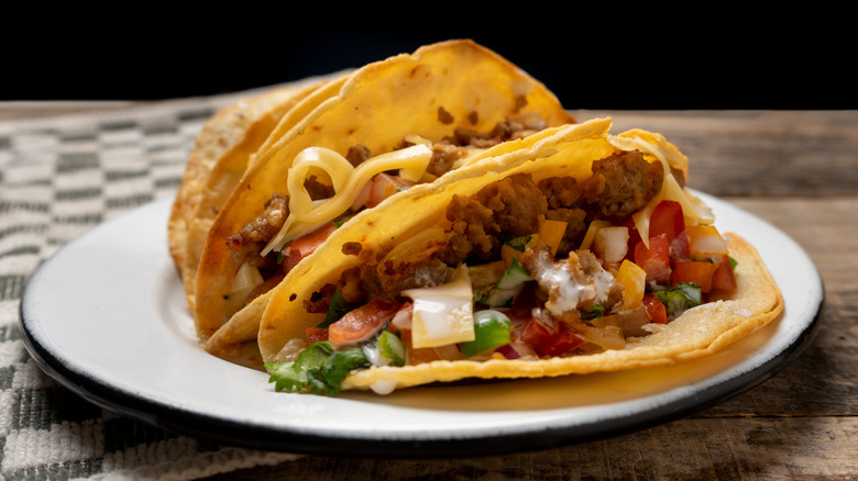 Another key tip to remember right after removing the taco shells from the oil is to drain them and then place them on paper towels to absorb excess oil. Additionally, keep in mind that tacos are best eaten immediately after cooking when they're hot and crunchy. Therefore, ensure you have your fillings ready in advance. However, if for one reason or another, you aren't able to stuff and serve the tacos immediately, keep them in a warm oven. Whether you're making your taco shells from the classic corn tortillas or your preference is flour tortillas, deep fry them with these tips in mind, and you'll be serving perfect puffy tacos.
