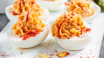 Deviled eggs make frequent appearances at gatherings of all types for good reason. Velvety, protein-packed, and easy to eat with your fingers, the two-bite stuffed eggs make a no-fuss appetizer. They can be dressed up for fancy affairs with caviar or truffles or kept simple with a sprinkle of paprika. There are dozens of ingredients you could use to upgrade your deviled eggs, and all of them make delicious variations added to the traditional mayo-egg yolk mashed filling. But if you want to skip the mayo, you might have overlooked a perfect non-dairy option for making a flavorful filling: hummus.