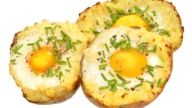 Just because Princess Diana followed an overall healthy diet doesn't mean that she didn't enjoy dishes that were slightly indulgent on the regular. One of her favorites, according to McGrady? Eggs Suzette. This dish all starts with a baked potato, which fits into Diana's low-fat diet nicely. McGrady would then scoop out much of the potato, filling the bottom with some wilted spinach. A poached egg would then fit on top of the dish, finishing it off with a flavorful protein punch. He would then pipe some of the reserved potatoes around the edge of the eggs for an interesting texture. A small amount of hollandaise sauce would bring it all together in an elegant, edible package.