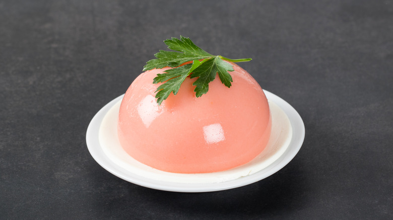 McGrady would serve this dish with a side of lobster tails, which definitely gives this dish more of a royal feel. However, the lobster tails were served on the side, so they're not necessary to make the tomato mousse itself. The plate was flavored with dill, chives, salt, and pepper, which likely yielded a floral and flavorful complement to all those fat-free dairy products. This gelatin-laden dish probably isn't for everyone, even though it's relatively simple to make at home if you're willing to put in the effort, but its light, restrained flavor profile is probably ideal on those days when you don't want to weigh yourself down with too many intensely flavored foods. Give it a try if you're looking for a way to use up those ripe tomatoes in your kitchen.