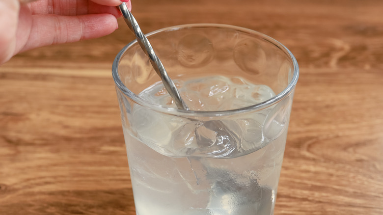 A long silver cocktail spoon is ideal to prepare your stirred lychee martini, but if you don't have one, try using chopsticks instead. They're long enough to mix even the tallest of drinks. As for timing, aim to stir your martini between 30 and 45 seconds. This duration ensures you have a well-balanced drink that's not too diluted, but with all the components thoroughly mixed together and chilled. You can always start with 30 seconds and work your way up, if need be. By then, you'll be more than ready to take a sip.