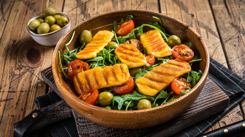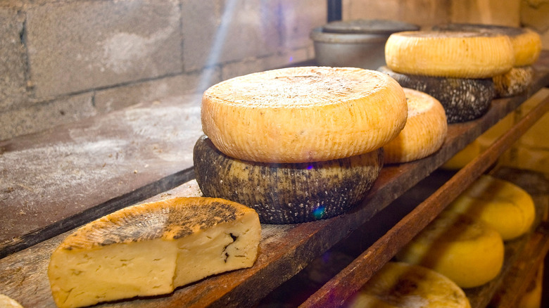 While halloumi is an easy-to-find favorite to make saganaki, we'd like to introduce you to the creamy Greek cheese called kefalotyri. This yellowish-white cheese can be traced back to the Byzantine era. Typically made with sheep or goat's milk, kefalotyri is commonly found in Cyprus and Greece. The flavor profile is tangy and sharp and only requires a few months to age for use. Cheeses that are left longer to mature and ripen can offer stronger flavors. Fans of Gruyère will appreciate the profile of this cheese, and with its firmer texture, slices of kefalotyri aren't at risk of falling apart on your grill.