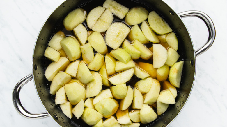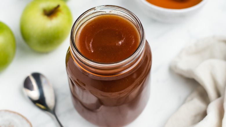 Tasting Table's recipe for honey apple butter uses Granny Smith apples — recipe developer Catherine Brookes chose them for the tart flavor, which balances out the sweetness from some of the other ingredients, such as the sugar and honey. With this in mind, you can swap out the Granny Smith apples for a softer variety that will cook down faster. Braeburn apples are quite similar to Granny Smith, just a tiny bit sweeter, while Jonagold apples have a lot of the same tartness as Granny Smiths — both of these are great replacements for a faster process with a similarly great taste.