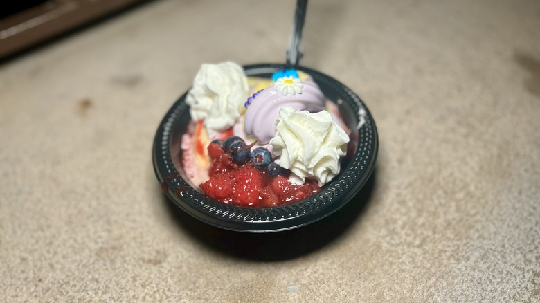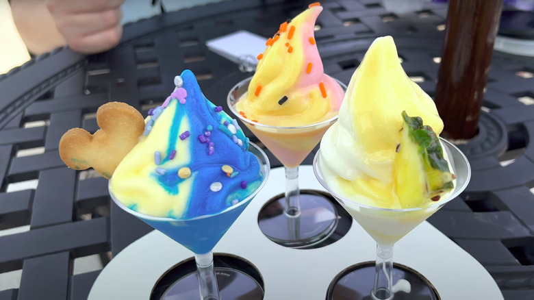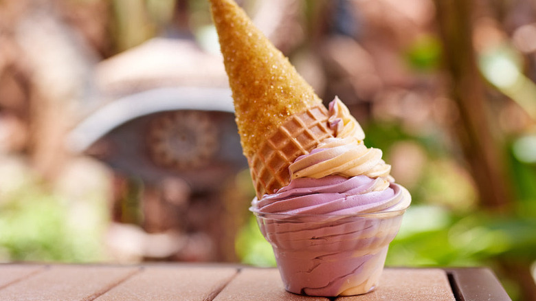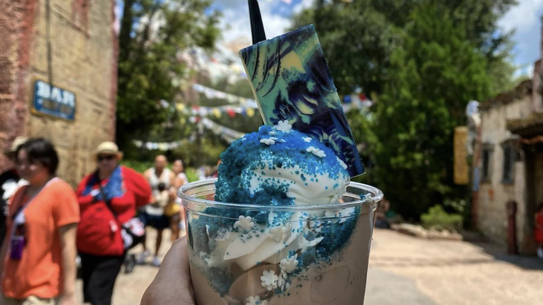 Here, you can order orange, strawberry, vanilla, and chocolate soft serve. You can also get orange and vanilla soft serve swirl in a cup, and there are plenty of floats available as well. This is also one of the locations that features specialty drinks and sundaes. At the time of writing, Sunshine Tree Terrace offers an I Lava You Float, which is made with orange Dole Whip with strawberry and passion fruit Fanta. It also comes with popping candy as a nod to the volcano it's named after. If you are a big fan of Orange Bird, this is also the perfect place to pick up an adorable Orange Bird sipper souvenir to take home.