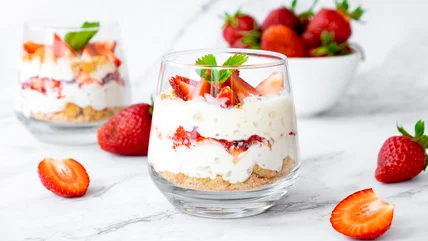 For an easy caffeine-free strawberry tiramisu, follow our matcha strawberry tiramisu recipe and omit the matcha. Instead of brushing the ladyfingers, you soak them in a simple strawberry syrup before adding the pieces to the tumblers. You can also create a more sophisticated flavor by taking a cue from classic tiramisu and soaking the ladyfingers in strawberry or orange liqueur instead. To make it even easier and make this a truly no-cook dessert, try this instant pudding hack for easy tiramisu: Skip the white chocolate mixture and use a packet of instant pudding. You can stick with the white chocolate flavor, but you can also use vanilla or any other flavor you'd like.