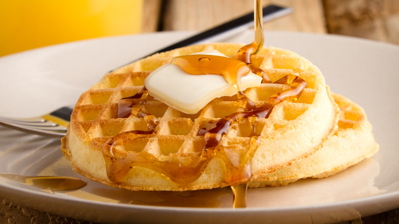 Even with this water trick, frozen waffles are never going to be as good as their homemade counterpart, which is why the way you dress them up matters. For example, make sure you have a high-quality maple syrup on hand — in Tasting Table's ranking of popular maple syrup brands, we put Crown maple syrup at the top. You can also add a dollop of whipped cream along with some fresh fruit. Alternatively, take inspiration from a more complex recipe; you may not have time to make a batch of our banana and maple walnut waffles, but you can add slices of fresh banana and chopped walnuts to the top of frozen waffles to make them a bit more filling (and delicious).