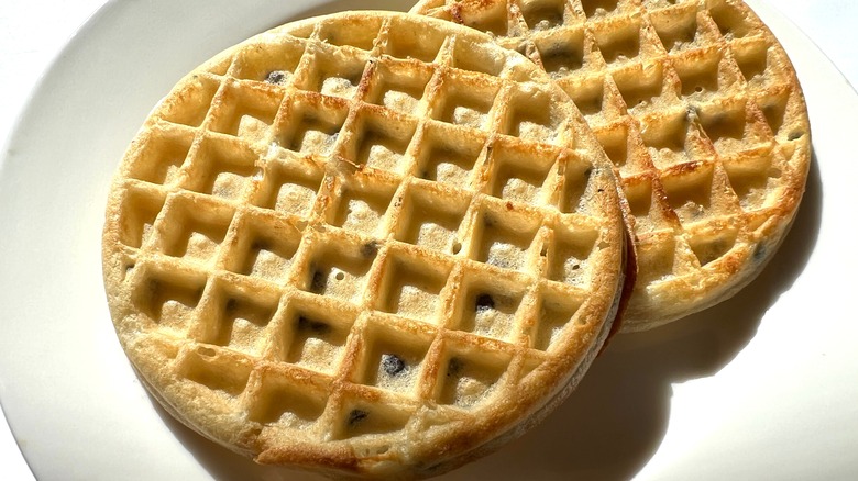 Sometimes, usually on weekends, it's fun to make a fancy waffle recipe from scratch, like buttermilk Belgian waffles or, for a more unique spin, sweet and savory sweet potato waffles. Other times, though, you simply don't have the time — or all the necessary ingredients — to whip up a homemade batter from scratch. In instances like these, frozen waffles seriously come in handy, and if you're going to heat some up from time to time, you need to know about this game-changing trick: Sprinkle water on top of the waffles before popping them in the oven.