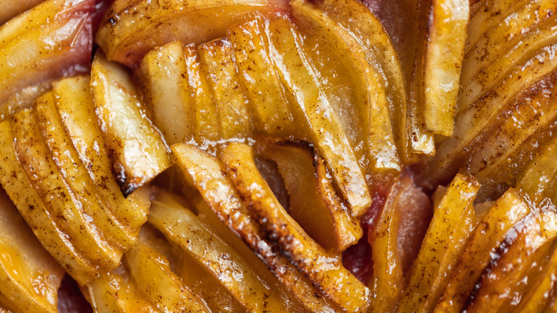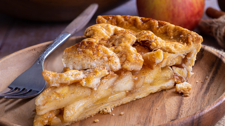 Fruit pie recipes tend to share a simple filling of fruit, sugar, spices, and lemon juice, each ingredient serving to ensure that the fruit's underlying flavor is the star of the show. Apple pie filling often follows this simple and delicious formula, but the method of preparation makes all the difference when you cut into the final product. The order and manner in which you incorporate each filling ingredient dictates its texture, separating a runny mess from plump, gooey, cohesive perfection.