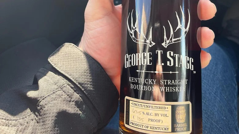 Buffalo Trace must be happy to stock its bottles in Costco — here comes another entry on this list from this distillery, and it's certainly not the last. George T. Stagg is a well-respected bourbon one Costco member managed to find in Malibu, CA in October 2023. It's a hugely powerful whiskey that often needs a drop of water to fully develop its robust flavor. Its proof is usually near the 120 region, which isn't too much for a seasoned whiskey drinker, but a novice may be overwhelmed.