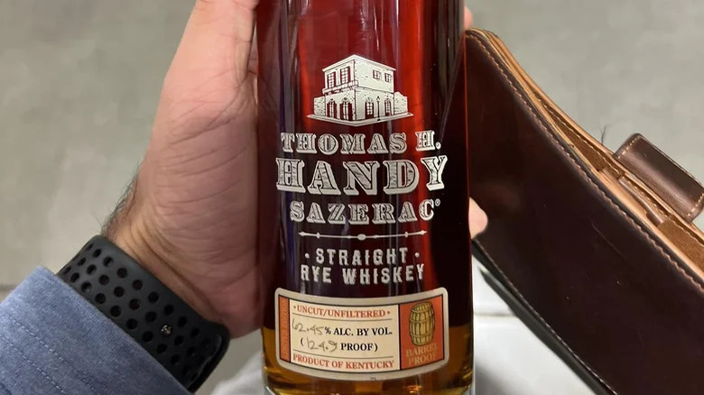 The nose here is powerful, boasting a big hit of cinnamon. Along with that, you get many of the expected sweet notes, but also crisp lemon. The palate hits you with all of these notes and more. The spiciness turns peppery, and flavors like caramel and dried fruits emerge. These big, bold flavors are helped by the high proof, which usually sits well above the 120 mark. One customer managed to find a bottle in January 2024 at a Louisville Costco. If you can't find it, the brand also sells the Sazerac Rye expression, which is much cheaper.