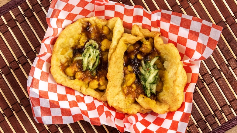Every country has its tried-and-true hangover cure, and Trinidad is no exception. Typically eaten for breakfast, doubles is a carb-heavy snack that should soak up just about anything left in your stomach from the night before. "Doubles is a beloved street food from Trinidad and Tobago, consisting of two pieces of soft, fried flatbread called bara, filled with curried channa (chickpeas)," chef Helmi Smeulders says. "It's often garnished with tamarind sauce, chili sauce, and other chutneys."