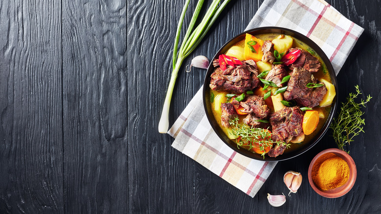 Despite steamy year-round temperatures, stew is a hugely popular dish across the Caribbean region. On the Dutch Caribbean islands of Aruba, Bonaire, and Curaçao (also known as the ABC islands), the dish is best known by its Dutch name, stobá. Among the most popular variations, kabritu stobá is a tomato-based goat stew simmered with fragrant spices until it falls off the bone. While not as widely eaten in the U.S., goat is actually among the world's most popular protein choices — one bite of homemade kabritu stobá, and you might just understand why.