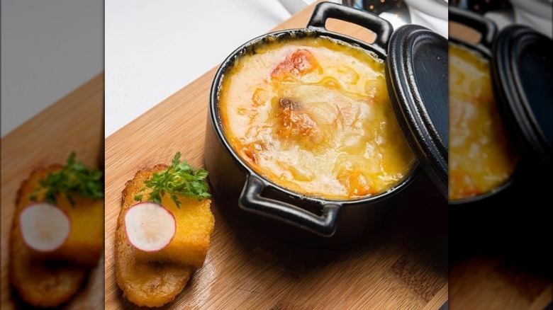 The resulting dumpling is baked until the cheese becomes a gooey case around the mouthwatering mixture — kind of like a cheese-encased pie. The blend of savory and sweet flavors, along with the rich, melty cheese, creates a unique and mouthwatering dish that highlights the ingenuity and resourcefulness of Caribbean cooking. While you'll likely find modern renditions of keshi yená served in ramekins like a cheesy crème brulée, more traditional spots will still serve their version the traditional way: Baked in an empty sausage can or wrapped in plantain leaves.