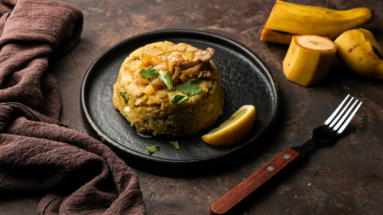 A melting pot of flavor, mofongo perfectly encapsulates Puerto Rico's past on a plate. The dumpling-like dish, made from unripe plantains, is a popular, albeit labor-intensive one. As chef Helmi Smeulders tells us, "The green plantains are cut into pieces and mashed by hand in a wooden pilón together with chicharrones (crispy pork skin) and fresh garlic." The doughy mixture is then typically formed into a ball or mound and stuffed with roasted meats or topped with a rich broth. While mashing by hand isn't the easiest route, it's this old-school method that gives mofongo its distinctive texture and keeps the dish connected to its multicultural roots.