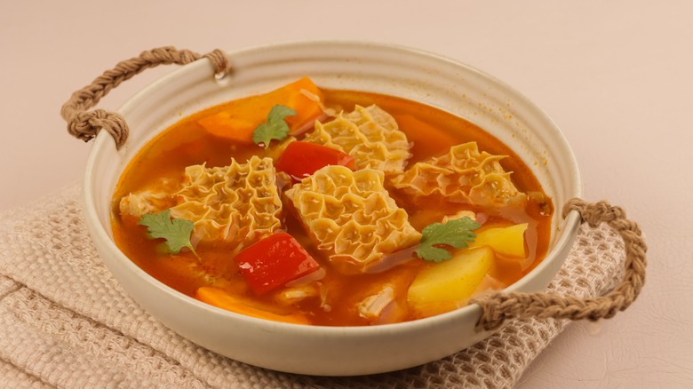 Popular in the Dominican Republic and Puerto Rico (among other islands), sancocho is a hearty stew that typically includes a blend of proteins and starches like beef, pork, chicken, yuca, plantains, and corn, according to chef Helmi Smeulders. The exact ingredients vary from family to family (or even from pot to pot), but the method remains steadfastly the same: Slow-cook the stew to develop the rich, complex broth that makes this homestyle dish supremely slurpable. Top with a squeeze of lime and cilantro for an extra dose of freshness.