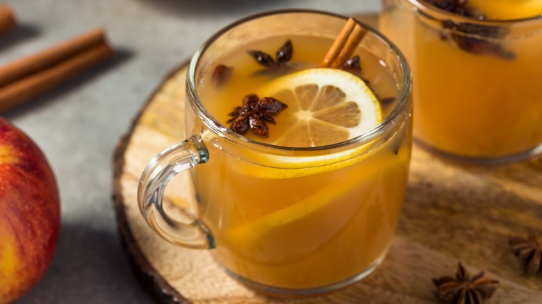 There are a number of recipes we enjoy during the colder months, but apple cider absolutely takes the cake. Sure, it's simple, but it's cozy and nostalgic, reminiscent of childhood autumns spent picking apples and playing in the leaves. While our love for the drink never wanes, it's a little heady for warm weather, which limits the time we get to enjoy it. Thankfully, adding lemon to apple cider is the best way to liven up the beverage and make it suitable for warmer months.