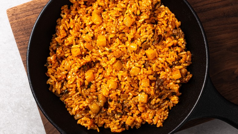 From takeout diners and fancy restaurants to home kitchens, it's not hard to find fried rice cooking on the pan, where it exudes a comforting warmth and tempting aroma. One of the reasons it's so ubiquitous, other than the ease of preparation and scrumptious taste, is the ingredient versatility. Almost anything can be added for a quick stir-fry, you just need to get a little creative and have fun with it. Gochujang, with its marvelous flexibility, is a fantastic addition. Whenever your fried rice needs a kick of heat, reach for this Korean condiment and have yourself a delectably spicy fried rice dish.
