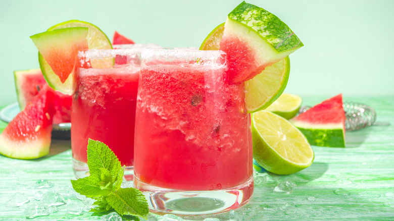 While this winning combination of watermelon and mint lends itself well to this particular margarita, it works nicely in other drinks, too. First, it would be a mistake to overlook the classic minty cocktail, the mojito. This watermelon mint mojito is a great substitute for the margarita if you don't have any tequila at home, but do have rum. If you're more of a wine person, this summery watermelon sangria is made with vodka, Grand Marnier, and sauvignon blanc. If frozen is for you, try a creamy frozen watermelon cocktail, which calls for pink gin and peach schnapps, or this frozen watermelon mezcal margarita recipe. However, if you're going to go for a margarita, give Witherspoon's a try — it's the star of the show this summer.