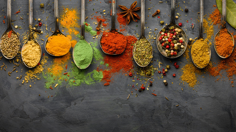 Along with a variety of green herbs, the spices in ranch dressing are what really make it. A hearty mix of salt and black pepper are typical of any iteration, but it's up to you to amp up the seasoning blend of your store-bought bottle. For example, something as simple as using coarse or freshly ground cracked black pepper will immediately add a touch of boldness to an otherwise standard recipe. You don't have to stick to just salt and pepper, though. With so many essential spices to have in your pantry, there's a lot of room for creativity.