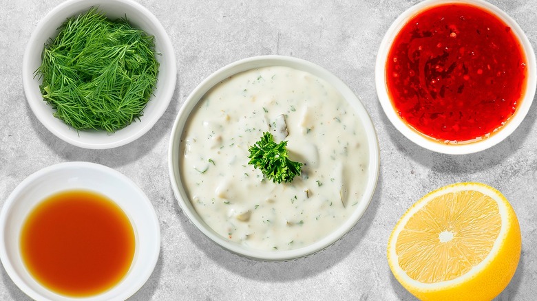Though it actually originated in the late 1940s, ranch dressing hit its stride around the late 80s and early 90s when it became part of both the Gen X and Millennial zeitgeist. Nineties kids will remember their childhood as the height of the ranch dressing decade and all of the creamy, dreamy years that have followed since. While the composition is a relatively simple mix of buttermilk, mayonnaise, herbs, and spices, the widespread availability of store-bought ranch dressing has many home cooks grabbing a bottle of their favorite brand and jazzing it up as they see fit — and there are many options to elevate the flavors to amazing new heights.