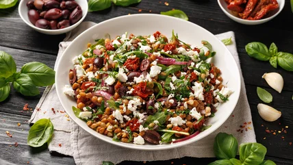 In addition to providing key nutrients, lentils are inexpensive legumes that are simple to cook and will last up to a week in the refrigerator. They are a vegan protein powerhouse, with just ½ cup of cooked lentils containing 12 grams of protein. They are also complex carbohydrates that will keep you feeling full for longer due to their high fiber content. With so many varieties of lentils to choose from, it's easy to switch up flavors and textures depending on the salad you have in mind. Of the seven types of lentils, green, black, and Puy lentils are ideal for salads as they retain their snappy texture, offering a more satisfying, toothsome bite than their yellow or red counterparts, which tend to become soft when cooked.