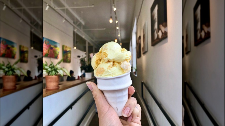 You can order your ice cream in a waffle cone, and also pack on the mix-ins and toppings, including wildflower honey, salted caramel sauce, matcha, and toasted coconut flakes. It's certainly not your classic New England-style ice cream, but you may find that you like it even more.