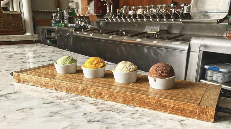 The ice cream at Forge Baking Co. is quite thick and delectable, and the flavors are not too out-of-this-world, but it does offer twists on staple frozen favorites. You'll find brown butter ice cream and malted vanilla (plain vanilla is often available), as well as chocolate and green tea.