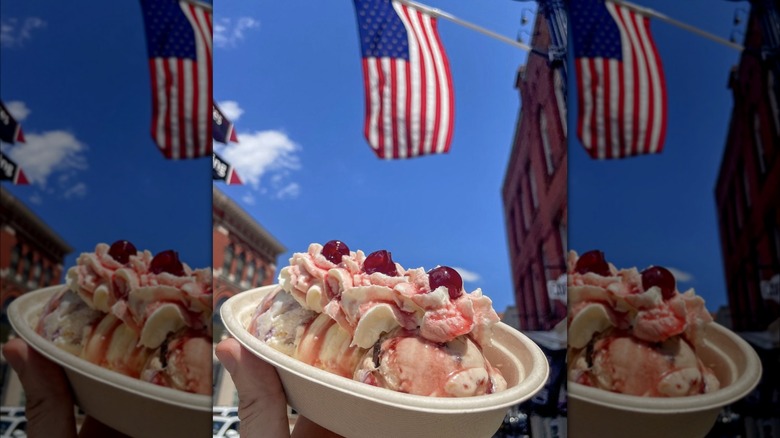 Boozy ice cream lovers will appreciate the frozen pudding, made with a rum base, cherries, raisins, pineapples, and apricots, while simplistic ice cream lovers will appreciate the classic sweet cream flavor or the banana split — made with two or three scoops of ice cream, sauces, whipped cream or marshmallows, nuts, and a cherry. You might just have to do a little bit of digging to unearth the banana underneath.