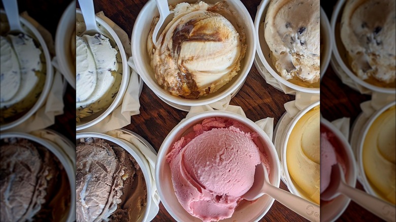 Although "lazy" might be in its name, don't take this shop lightly. Lazy Bear Creamery in Dorchester cranks out 110 (yes, you read that right) flavors at its shop. You'll find a couple staples, like vanilla, cookie dough, and coffee Oreo, as well as in-house classics like the Lazy Bruin, a yellow-dyed vanilla ice cream with chocolate sprinkles, and the Scarlet Macaw with chocolate ice cream, white and regular chocolate chips, strawberries, and white chocolate sauce.