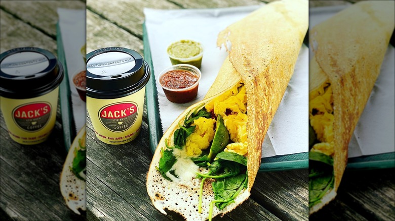 While the dosas are unquestionably the main event, we also recommend the Thali platter served with seasonal vegetables over basmati rice with naan and yogurt. Be sure to order a variety of housemade chutneys to pair with your savory meal. We're partial to the cilantro and peanut.