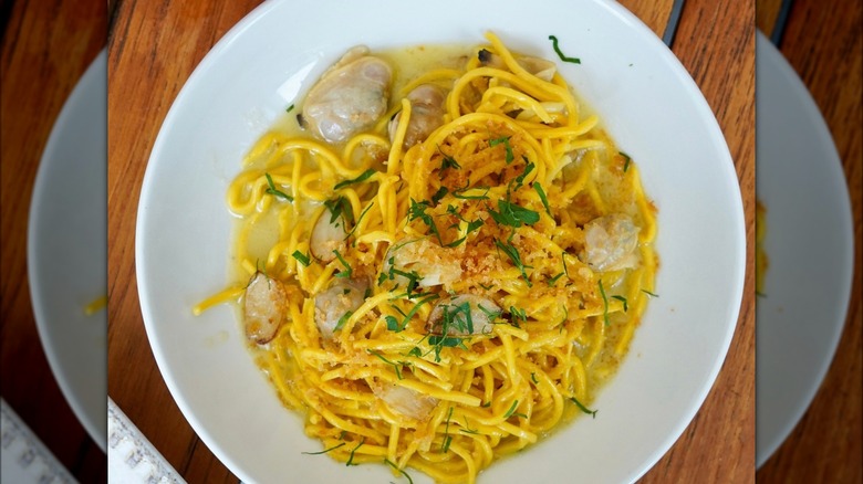 Start with the spicy tuna tartare served with smoked avocado and drizzled with Aleppo oil — made with Aleppo pepper as opposed to red Chile flakes. Then order the Mediterranean octopus for the table, which arrives with burnt eggplant yogurt. Round out your meal with at least one bowl of heavenly seafood pasta.