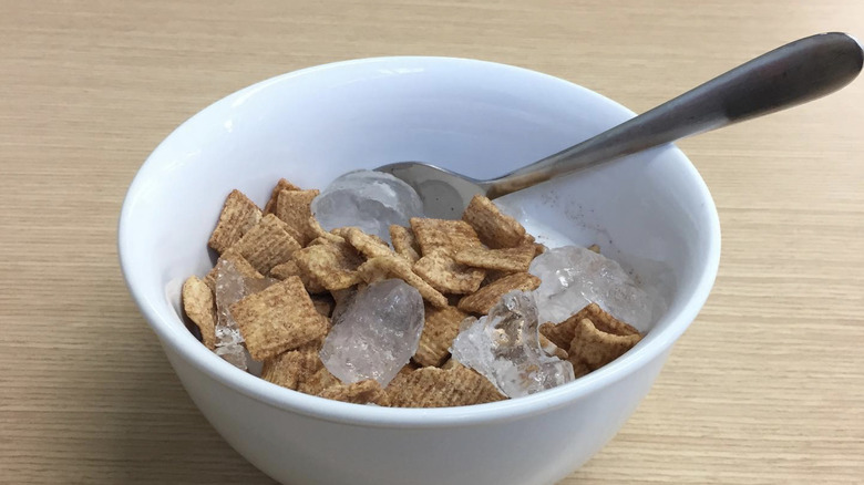 Of course, leave it to other social media accounts to take the highly contested bowls of ice-cube garnished cereals to new tasting heights by sprinkling salt on top of the morning servings. Instagram's Molly Baz has been vocal about the need to add salt to ice-cube-topped bowls. For cereal brands that lean towards the sweeter side, this extra pinch of salt can, indeed, help balance out more sugary bites and create a rounder, more mature flavor profile.