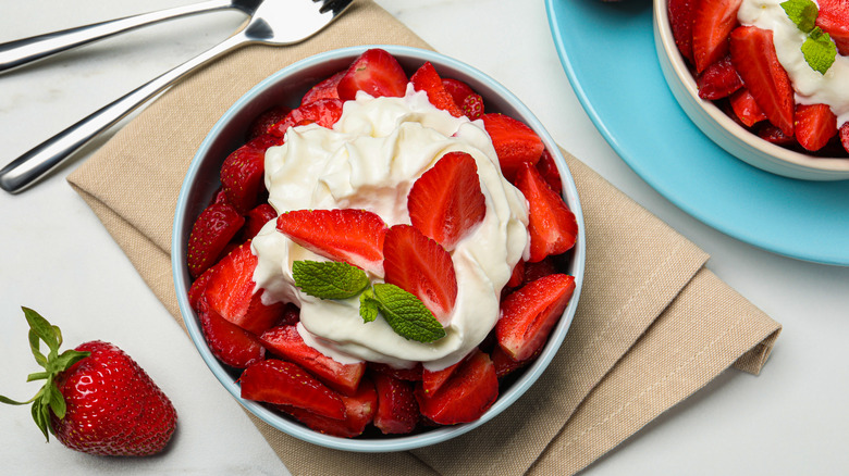 There are countless uses for your macerated strawberries. If you want to keep things simple, just eat them as is — that extra bit of sugar and acidity is enough to create a mouthwatering dessert. You could also put your macerated strawberries on top of yogurt or chia pudding, and they also taste great as a topper for French toast. Experiment with other uses for macerated strawberries, and you'll never be subjected to a bland strawberry experience again.