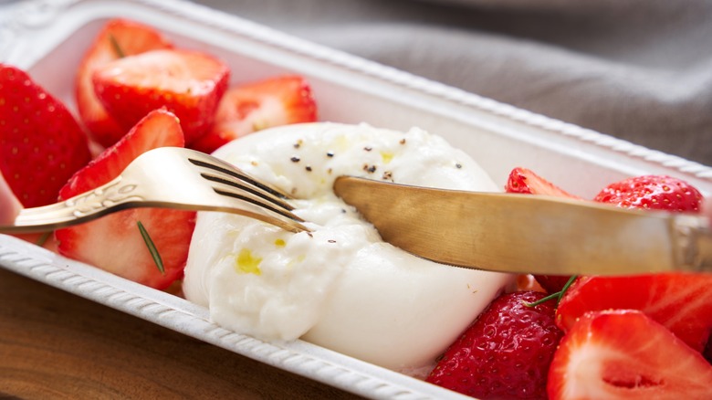 According to Ranveer Brar, "[S]liced strawberries and fresh mozzarella cheese chunks with balsamic reduction on top create quite a balanced taste between sweetness and sourness." That sweet and sour mixture of flavors is a winning combo every time. Plus, it looks especially vibrant on the plate. Brar says that this dish makes for a beautiful appetizer or light summer lunch, depending on how much you prepare. It's super simple to make and comes together in just a few minutes, so it's also ideal for those times when it's simply too stressful to turn on the stove or the oven during the hottest months of the year.