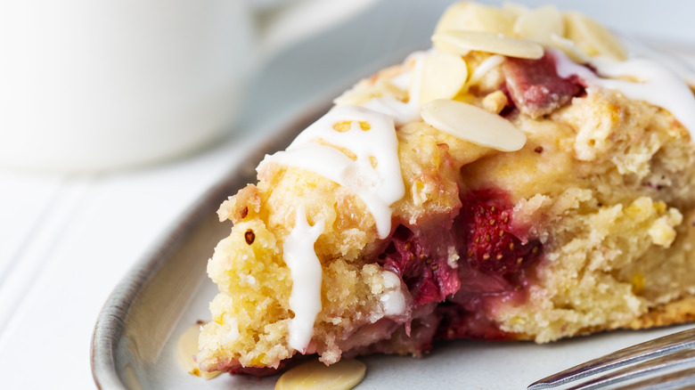 "Many baked goods have fresh raspberries or blueberries," says Patterson. "You can chop up strawberries and use them instead for a whole new flavor. This works great in everything from scones to muffins." Since strawberries are typically larger than a lot of other berries, you'll want to make sure you cut them into relatively small pieces so they don't overwhelm your baked goods. Don't be afraid to get creative with your baking. Strawberries may just add the sweet, fruity touch your favorite pastry recipes are begging for.