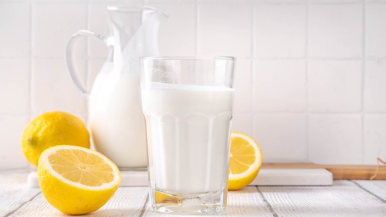 It's happened to all of us — you're in the middle of a recipe, everything's going smoothly, and suddenly, you realize it calls for buttermilk. Not milk, which you have a nearly full gallon of in the fridge, but buttermilk. Thankfully, the recipe writer comes to the rescue with a helpful tip — you can avoid an emergency grocery run and make the buttermilk yourself at home by mixing a splash of lemon juice or white vinegar with ordinary milk.