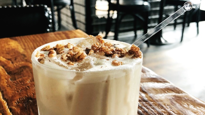 Once you've experimented with making cereal-infused milk, you can turn your creativity toward the cocktails you create with it. Make a White Russian with Cap'n Crunch-infused milk, or enjoy a simple bourbon drink made with Apple Jacks-flavored milk. Play up bourbon's caramel and vanilla tasting notes with Honeycomb or Cookie Crisp infused milks, or lean into smoother tasting notes of wheat and grains with milk infused with Raisin Bran, Corn Flakes, or Corn Pops.
