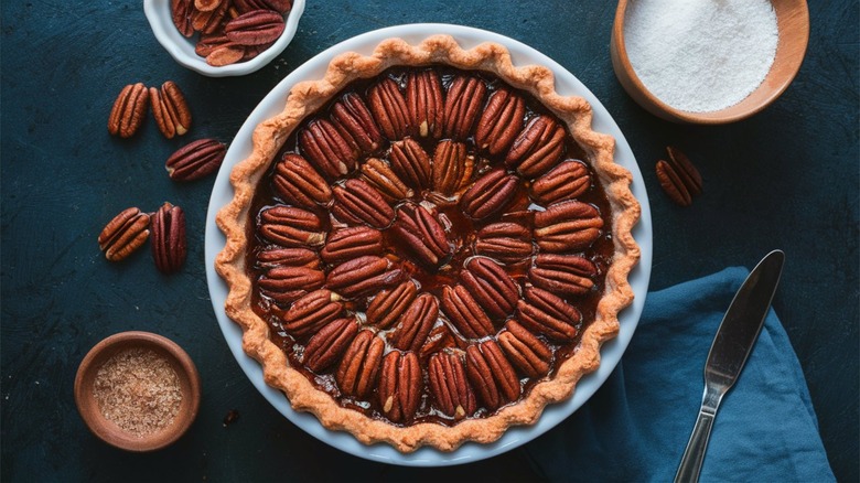 We mostly see a classic pecan pie recipe come out of the woodwork at Thanksgiving celebrations, but there's no reason to limit this tasty treat to a fall holiday. The ingredient list for this dessert is short and as sweet as the pie itself, with only the nuts and other baking staples making the cut, so there's no need to wait until the weather starts getting crisp. But if the flavors of pecan pie only sound exciting in the context of Thanksgiving, there's one easy addition that will make yours much more appealing any time of year: soaking the pecans in bourbon first.