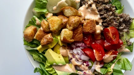 If you have leftovers and enjoyed this salad as is so much you want to eat it on repeat, that's an option too, and Le Moing notes that all leftovers will last about five days. "If you're meal prepping and plan to bring this salad to work for lunch, you can add all the components to a meal prep container but store the special sauce in a separate container and dress your salad just before eating," she suggests. As for those delicious croutons, be sure to store them separately in a resealable bag at room temperature.