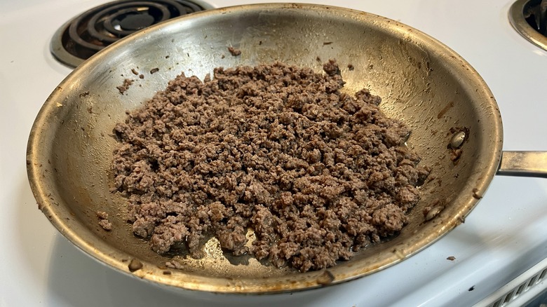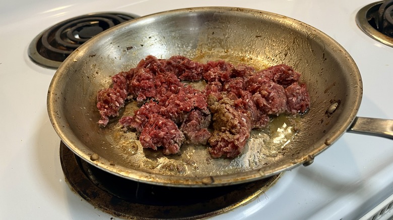 Step 11: Add beef to the skillet