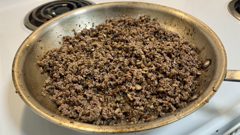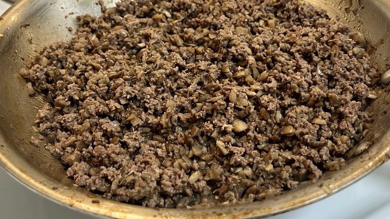 If you find yourself with leftovers, every component of the bowl can be repurposed in other salads, dips, or sandwiches, but perhaps none is quite as versatile as the mushroom and beef mince. Le Moing tells us that there are many ways to get creative with the leftover mushroom burger mixture. "To transform it into a completely different dinner, you can add the leftover beef mixture to a grain bowl or fried rice with other veggies and a fried egg," Le Moing suggests. She also notes that you can add the mixture to hollowed-out bell peppers or zucchini. For a quick, flavorful weeknight meal, use the mushroom and beef mixture to bulk up a pasta dish alongside a jar of marinara sauce. Finally, she notes that the beefy mixture also works wonderfully as a taco or quesadilla filling.