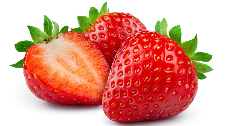 In the first recipe, de Laurentiis uses strawberries along with cherry tomatoes, honey, and balsamic vinegar. This creates a deeper contrast between the naturally sweet and acidic elements of typical bruschetta. Strawberries are a nice touch here because of their flavor, and because their red color keeps the recipe's traditional visuals intact.